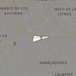 Located it the north of Embajadores, it constitutes a reference for the latter neighborhood despite its rather small size.[1]