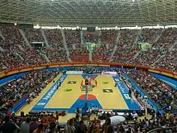 Plaza de Toros de La Ribera is a bullring in Logroño, Spain. It is currently used for bull fighting, with a retractable roof, has also hosted basketball and 2010 Davis Cup tennis. The stadium holds 11,046 spectators. It was opened in 2001.[1]