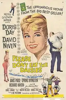 Please Don't Eat the Daisies is a 1960 Metrocolor comedy film in CinemaScope starring Doris Day and David Niven,[3] made by Euterpe Inc., and distributed by Metro-Goldwyn-Mayer. The movie was directed by Charles Walters and produced by Joe Pasternak, with Martin Melcher (Day's husband) as associate producer.[3]