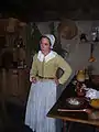In the 1627 English Village section of the museum, trained first-person ("historical") interpreters speak, act and dress appropriately for the period,[5] interacting with visitors by answering questions, discussing their lives and viewpoints and participating in tasks such as cooking, planting, blacksmithing and animal husbandry. Third-person ("modern") interpreters answer guests' questions that the first-person interpreters cannot.[6] The 1627 English Village loosely follows a timeline from late March through November (the months when the museum is open) of 1627,[7] depicting day-to-day life and seasonal activities, as well as featuring key historical events such as funerals and special celebrations.