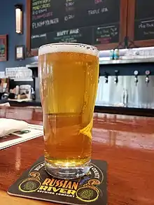 In 2010, it landed on the number 2 spot on beer rating websites Beer Advocate and RateBeer; the result was all 620 gallons brewer Vinnie Cilurzo had made were gone in eight hours.[1] Since then, Russian River Brewing Company has created a controlled release over a two-week period beginning the first Friday in February.[3] Until 2020, it was only available on tap, in 10-ounce glasses, with a limit of three per person at the pub.[4] As it became popular, people began camping outside the pub[5] and waiting hours in line to get a pour.[6] A handful of bar and restaurant accounts also receive kegs, and tap them typically in conjunction with San Francisco Beer Week activities.[1]