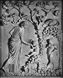 ![]() Eirene with the infant Ploutos: Roman copy after Kephisodotos' votive statue, c. 370 BC, in the Agora, Athens. | |