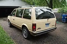 First-generation Voyager minivans were offered in three trim levels: an unnamed base model, mid-grade SE, and high-end LE, the latter bearing simulated woodgrain paneling. A sportier LX model was added in 1989, sharing much of its components with the Caravan ES.