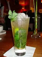 Plymouth also make a 'navy strength' variety of Plymouth Gin, which is 57% ABV (100° English proof), being the traditional strength demanded by the British Royal Navy.[7] It was a tradition in the Royal Navy that all newly commissioned vessels receive a "Plymouth Gin Commissioning kit", a wooden box containing two bottles of navy strength Plymouth gin and glassware.[8]