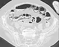 Pneumatosis intestinalis (also called intestinal pneumatosis, pneumatosis cystoides intestinalis, pneumatosis coli, or intramural bowel gas) is pneumatosis of an intestine, that is, gas cysts in the bowel wall.[1][2] As a radiological sign it is highly suggestive for necrotizing enterocolitis. This is in contrast to gas in the intestinal lumen (which is relieved by flatulence). In newborns, pneumatosis intestinalis is considered diagnostic for necrotizing enterocolitis, and the gas is produced by bacteria in the bowel wall.[3] The pathogenesis of pneumatosis intestinalis is poorly understood and is likely multifactorial. PI itself is not a disease, but rather a clinical sign. In some cases, PI is an incidental finding, whereas in others, it portends a life-threatening intra-abdominal condition.
