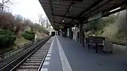 The platform was roofed over in 1978, before only a part of it was under the roof. The U3 trains towards Krumme Lanke came above ground after Breitenbachplatz.[1]