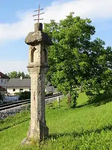 - There is a stone column shrine dating from 1510 on the eastern edge of Podgorje, between the main road and the railroad tracks. It is known as the "blood shrine" (Slovene: krvavo znamenje).[10] This may refer to its location at a site where executions imposed by the court in Kamnik were carried out, or it may refer to painting on the shrine, traces of which are still visible.[11]