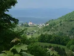 The local parish church, built on a slight elevation on the edge of the village, is dedicated to the Our Lady of Good Counsel and belongs to the Roman Catholic Diocese of Novo Mesto. It was built in the early 17th century and extensively rebuilt in the 19th century.[3]