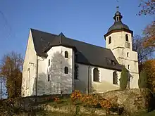 The Church of the Good Shepherd is the oldest Lutheran church in the area. It was built in the late Gothic style by the Zedtwitz family in 1470–1490. In the 1680s, it was rebuilt in the Baroque style. The tower was modified in 1677–1699.[4]