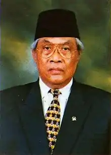 Poedjono's second term was cut short by a year, as on 3 October 1997 he was elected as the deputy speaker of the People's Consultative Assembly.[2] He oversaw the seventh reelection of President Suharto in March 1998, as well as his resignation two months later.[14] A new parliament was formed following the 1999 legislative election and Poedjono resigned from the People's Consultative Assembly in 1999.[1]