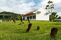 During the construction of a village kindergarten building in Pogunon in 2000, several ancient artefacts comprising three whole jars, pieces of four jars of blue and white plates including bowls were accidentally unearthed.[1][2] Inside the three jars were human remains with ceramics found in the site were originated from China and made between the 16th to 19th centuries.[1] A further thirteen ancient burial jars were also unearthed from an old graveyard in front of a St Joseph Chapel in the same village.[2] One of the broken jars consisted of human bones and various artefacts such as coins dating back to 1885, a bangle and belt made from ancient silver coins were also found in the jar which however was broken by an excavator during the discovery. The area with stone markers (megaliths) is located in the front site of the recent museum which established in 2004.[2][3]
