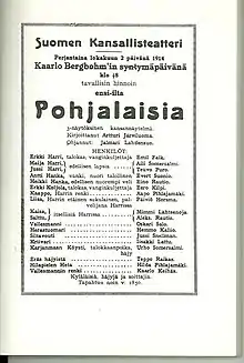 Pohjalaisia (The Ostrobothnians) is a 1914 Finnish play. Based on it, a 1924 opera and two films in 1925 and 1936 were also made.[1][2] Its story takes place around 1850 in South Ostrobothnia and depicts local folklife.[3]