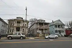The Point Neighborhood Historic District, also known as Stage Point, is a predominantly residential historic district just south of downtown Salem, Massachusetts. It is a densely built, roughly rectangular grid of streets east of Lafayette Street, south of the South River, west of Congress Street, and north of Chase and Leavitt Streets. This area was the target of a major redevelopment effort undertaken by the city after a fire swept through in 1914. With many multiunit residential buildings constructed in just three years, the architecture of the area is remarkably cohesive. Commercial development is generally restricted to the fringes of the area, on Lafayette Street (a major local thoroughfare) and Congress Street.[2]