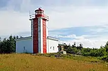 The current Point Prim Lighthouse is the fourth in a line of lighthouses built at Point Prim since 1804. It is located at the mouth of the Digby Gut, which connects the Bay of Fundy with the Annapolis Basin.[1][2] It is located approximately 8.5 km outside Digby.[3]