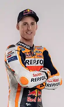 Pol Espargaró Villà (born 10 June 1991) is a Spanish Grand Prix motorcycle racer in the MotoGP class for the Repsol Honda Factory Team. Pol is the younger brother of Aleix Espargaró, and is best known for winning the 2013 Moto2 World Championship.[1][2] This earned him a move to Monster Yamaha Tech 3 in 2014 but had 3 largely unsuccessful seasons failing to score a single podium.