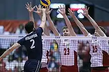 They began season with intercontinental round of World League 2015. First match with Russia, Poland won 3–0.[58] Most Valuable Player of match was Mateusz Bieniek, who played his first match in senior national team. After break to national team returned a few players – Bartosz Kurek, Jakub Jarosz, Grzegorz Łomacz, Piotr Gacek, Wojciech Grzyb. Next day, Poland beat Russia in five-set match (3–2). Most Valuable Player of match was Bartosz Kurek (23 pts).[59] On 5 June 2015 Poland beat Iran (3–1).[60] Bartosz Kurek scored 30 pts and he was Most Valuable Player of match. Next day, Poland won another meeting with Iran (3–2) and MVP was chosen Michał Kubiak.[61] On 12 June 2015 Poland lost first match with United States (3–2) after almost 3 hours meeting.[62] It was first lost match of Poland since 10 September 2014, when they lost with U.S. national team at World Championship. Next day, Poland also lost with American players (3–1). After spending one week in United States, Poland moved to Russian ground – Kazan, where won two matches against Russia (3–1) and (3–2).[63][64] Then they flew to Tehran. After a spectacular meeting, Poland lost first match on 26 June (3–2). Two days later, Polish national team beat Iran (3–1). Polish team spent three weeks in tour and they came back to Poland on last matches of intercontinental round with United States. On 3 July 2015 Poland beat USA in tie-break and achieved two points, which gave Polish team a qualification to final round of World League 2015 in Rio de Janeiro. Next day, they lost match (1–3). Poland qualified for the Pool J with Serbia and Italy. On 17 July Poland won match over Italy (3–1) and qualified to semi-final.[65] Main leader in this important meeting was Michał Kubiak, who scored 19 pts. Next day, Serbia won over Poland (2–3), but Polish team gained 1 pt and took first place in Pool J. On 18 July, Poland lost semi-final with France (2–3). On 19 July Poland did not achieve bronze, because of lost with USA (0–3).[66] Polish team had problems with own errors. Poland took 4th place in edition of the World League 2015. Polish players achieved two individual awards – Michał Kubiak was one of the Best Outside Spiker and Paweł Zatorski was Best Libero. In 2–9 August all players, whose were in final round in Rio de Janeiro went to training camp in Arłamów and two players joined to team (Włodarczyk, Kłos). Then the team without Wrona was training in Spała.