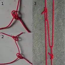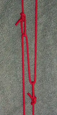 The poldo tackle[1]is an instant tension-applying and tension-releasing mechanism.[2][3] The tackle allows for a 2:1 mechanical advantage using only rope.