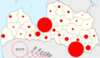 | Ethnic Poles distribution in Latvia [3] | ||||||||