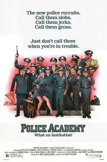 Police Academy is a 1984 American comedy film directed by Hugh Wilson in his directorial debut, and distributed by Warner Bros. Pictures.[4] Its story follows a new recruitment policy for an unnamed police department's academy that is required to take in any recruit who wishes to try out to be a police officer. The film stars Steve Guttenberg, Kim Cattrall, and G.W. Bailey.