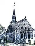 A former gothic St. Mary's Church in The Old Town of Police, 1884