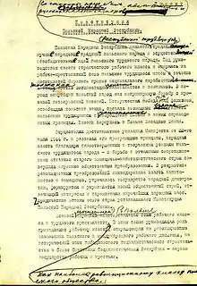 ![]() The Russian translation of the draft of the Polish constitution, with revisions and remarks hand-written by Stalin | |