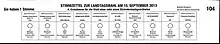 The state election was held on 15 September 2013. The CSU won an absolute majority of the seats in the Landtag, while the FDP, a coalition party in the outgoing Bavarian government, did not receive enough votes to enter the new parliament.