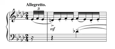 Sergei Rachmaninoff's Polka de W.R. is a virtuoso piano arrangement of Franz Behr's Lachtäubchen (Scherzpolka) in F major.