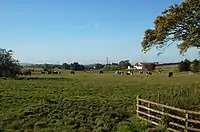 Blaeu's map dating from Timothy Pont's survey of the early 17th century records a tower without any woodland policies.[18] Armstrong's map of 1775 shows two buildings recorded as Pockelly, but neither shown as a castle or mansion.[19] Pokelly Hall is shown for the first time on Thomson's Map of 1832.[20] Then 1890 OS map shows Pokelly Castle within an enclosure close to the Balgray Mill Burn and situated on a road system linked to Gardrum Mill, Gainford, Crofthead and Fenwick. The name Pathelly Hall is sometimes used for Pokelly Hall in old accounts.[21]