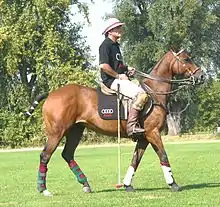 Various breeds used include mountain ponies from the Himalayas, Manipur ponies from Manipur, Arabians and the ever-popular Thoroughbred and its crosses.[1] In the United States, Thoroughbreds and Quarter Horses are often crossed to produce polo ponies, while in recent years crosses of Thoroughbreds and Criollo horses from Argentina have become popular.[3] In Australia, Australian Stock Horses are the most common breed used in polo.[4][5]