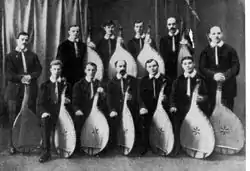The Poltava Bandurist Capella was vocal-instrumental ensemble who accompanied themselves on the multi-stringed Ukrainian bandura. It was initially established in February 1925, based on a male church choir who sang in the Ukrainian Autocephalous Orthodox Cathedral in Poltava under the direction of Fedir (Khvedir) Popadych. The ensemble was disbanded in October 1934.