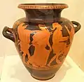 He painted particularly large containers such as stamnoi, kraters, hydria and shoulder amphorae, as well as Nolan amphorae and pelike.[1]