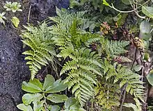 The plant is a terrestrial or lithophytic fern. It has a short creeping rhizome with dense, dark brown, lanceolate scales. Its 3-pinnate fronds combine a 10–50 cm stipe with a lamina 15–50 cm long and 12–40 cm wide.[1]