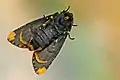 Pupa obtect. Anterior side broader. Early stages light coloured. It turns dark brownish to blackish in emergence time. Pupation occurs within soil in earthen cell. Stage lasts for 7.5 days.[6]