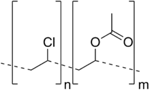 Polyvinyl chloride acetate (PVCA) is a thermoplastic copolymer of vinyl chloride and vinyl acetate.[1] It is used in the manufacture of electrical insulation, of protective coverings (including garments), and of credit cards and "vinyl" audio recordings.