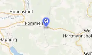 Pommelsbrunn station is a railway station in the municipality of Pommelsbrunn, located in the Nürnberger Land district in Middle Franconia, Germany. It is located on the Nuremberg–Schwandorf line of Deutsche Bahn.[1] It is served by the S1 of the Nuremberg S-Bahn.