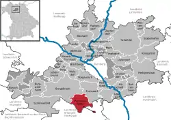The community lies north of Höchstadt an der Aisch on the river Reiche Ebrach.