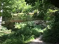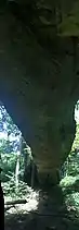 The Pomona Natural Bridge is a natural bridge approximately 30m long, 3m wide, and 3m thick, located near Pomona, IL. It is in the Shawnee National Forest. A small unnamed stream flows beneath the bridge.