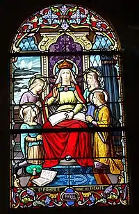 According to the life of her son, Tudwal, Pompeia was the sister of King Riwal II of Domnonée.[2] Tradition at Langoat further asserts that she became one of the wives of the fictional King Hoel Mawr (or the Great) who was invented by Geoffrey of Monmouth as a supposed overlord of all Brittany.[3] After being exiled in Britain for some years, Pompeia eventually returned to her husband's kingdom with her daughter, Saint Scaeva, and her son, Saint Tudwal.[2] She settled near the monastery of Tréguier, founded by the latter, and died where the church of Langoat stands today.[2] Her relics are still preserved there and a shrine has been erected to her memory.