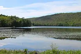 Most of the upper reaches of the watershed of Pond Creek are on a glacial or resedimented till known as Wisconsinan Till. However, outcroppings of bedrock consisting of sandstone and shale occur on Penobscot Mountain. Small patches of alluvium and boulder alluvium occur along the creek downstream of Lily Lake.[3] In its lower reaches, the valley of the creek mostly contains alluvium and Wisconsinan Ice-Contact Stratified Drift. Wisconsinan Ice-Contact Stratified Drift consists of stratified sand and gravel, as well as some boulders. Bedrock consisting of sandstone and shale surrounds the valley and an alluvial fan occurs at its mouth.[4]