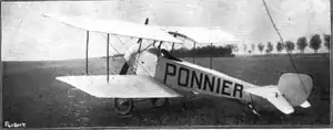 The Ponnier L.1 was an early French biplane single seat scout, built just before World War I. It did not reach production.