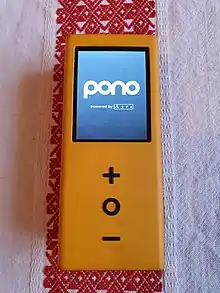 PonoPlayer is a portable music player created by Neil Young's company, PonoMusic, as the result of a successful Kickstarter campaign.[5]