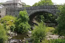 The new bridge was completed in 1849 by Thomas Penson of Oswestry or his son Richard Penson.[1] The bridge carries the A487 road,[3] also known as the Fishguard to Bangor Trunk Road in West and North Wales.[4] A short section with an arch for leat overflow carries the date 1912. The bridge was listed Grade II on 23 May 1996, and it is described as "Pont Aberarth and attached abutment walls".[3]