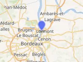The Pont d'Aquitaine is a large suspension bridge over the Garonne, north-west of the city of Bordeaux, in France. It forms part of the ring-road of Bordeaux and carries the A630 autoroute. It was completed in 1967 and its main span is 394 m (1,293 ft) long.