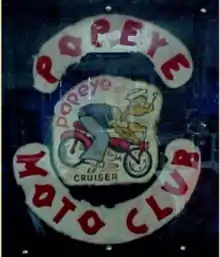 The Popeye Moto Club was founded by Michel "Sky" Langlois and Roger Calve. The year of the club's formation has been variously reported as either 1951 or 1964, which would seem more likely. Inspired by the fictional character Popeye the Sailor Man, the Popeyes' patch featured the character smoking his signature tobacco pipe whilst riding on a cruiser motorcycle. Headquartered at 4862 Drolet St., Montreal, Quebec, the club established several additional chapters throughout the province, located in Drummondville, Gatineau, Quebec City, Rive-Sud, Sherbrooke, Sorel-Tracy, and Trois Rivieres.[4][5] At their largest, the Popeyes were estimated to have several hundred members across Quebec.