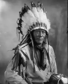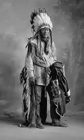Porcupine was a chief of the Northern Cheyenne but never recognised as such by the U.S. government, probably because of his connection to the Ghost Dance.[30] He was also a powerful medicine man; according to Marquis he had more influence than the highest status medicine man in the tribe, the Keeper of the Sacred Tepee.[31] He was involved in four separate treaty councils with the U.S. which resulted in formal treaties, all of which he considered had been abrogated by the U.S. Porcupine was most troubled by the U.S. reneging on the treaty agreement over the Black Hills after gold was discovered there, which was the immediate cause of the 1876 war. Porcupine was the spokesman for a Cheyenne delegation to Washington during the presidency of Benjamin Harrison (1889–1893), the purpose of which was to seek reparations for treaty violations.[32]