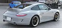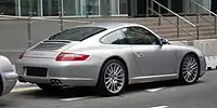 Porsche 997 is the internal designation for the Porsche 911 sports car manufactured and sold by the German automobile manufacturer Porsche between 2004 (as Model Year 2005) and 2013. Production of the Carrera and Carrera S coupés began in early 2004, all-wheel drive Carrera 4 and Carrera 4S began to be delivered to customers in November 2005, the Turbo and GT3 derivatives went on sale in late 2006 and the GT2 in 2007. In addition to the coupé and cabriolet versions, Targa versions of the Carrera 4 and Carrera 4S were also available, which carry on with the "glass canopy" roof design used since its first application on the 993 until the 991, which reverted to the classic targa top layout used on the early 911 Targas.