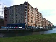 In 1900, the coal fired Pinkston Power Station was built at Port Dundas to generate electricity for the Glasgow Corporation Tramways network.[5][6] Equipped with Belliss and Morcom generator sets, Glasgow Corporation had decided to electrify the network by 1901 for the opening of the International Exhibition at Kelvingrove Park. A large cooling tower was added in 1954 and was the largest in Europe at the time.[7] After passing to the South of Scotland Electricity Board in 1958, it was decommissioned in the 1960s and eventually demolished in the early 1980s.