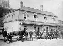 The first station in Port Moody was built in 1882[4] as the original western terminus for the Canadian Pacific Railway, before it was extended to Vancouver.[5] The second railway station, built in 1908, was first moved to a location west of Queen Street[4] in 1945 and, when the CPR discontinued passenger service in 1976, was bought by The Port Moody Historical Society, who moved it again in 1978 to Murray Street, where it now serves as the home of the Port Moody Station Museum.[6]