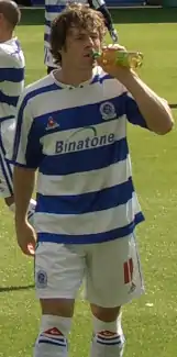 Genuine hopes of promotion in 2011–12 were brought to an end after the club was issued with a winding up petition by HM Revenue and Customs on 29 February 2012; the club were by this time unable to pay tax bills, creditors, or staff wages.[55] The club entered administration on 9 March.[56] The club finally exited administration on 20 November 2012,[57] and Tom Pope scored 33 goals to fire Vale to promotion back to League One with a third-place finish.[58] They stabilised in the division under new boss Rob Page, before chairman Norman Smurthwaite orchestrated the departure of Page and his squad in favour of the club's first foreign manager, Bruno Ribeiro, in June 2016.[59][60] The result was relegation back into League Two at the end of the 2016–17 season, after which Smurthwaite resigned as chairman.[61] He returned to the role the following season and threatened to put the club into administration if a buyer was not found by May 2019, a fate which was avoided when Carol and Kevin Shanahan completed their takeover.[62]