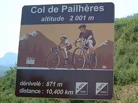 ![]() Sign at Mijanès at the start of the Port de Pailhères | |